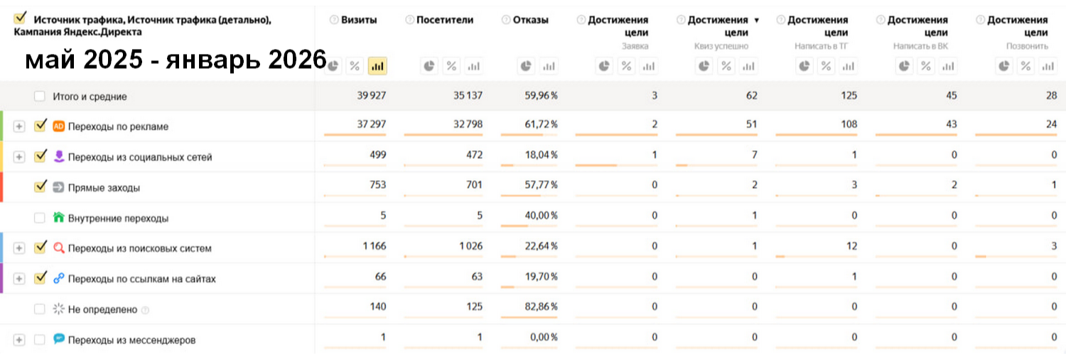 Ниша, скажу честно, мною не исследована))) Хотя сам организовал много концертов и слушаю тяжёлую музыку, рекламу для групп (тем более "каверов" не вёл. Сложность аналитики заключается в том, что посетители с рекламы не знают музыкантов. Поэтому логично, что они уходят в соцсети, чтобы познакомиться поближе. И решение о заказе группы на мероприятие принимается уже в соцсети. Конечно, сделали квиз, после заполнения которого посетитель получает скидку 10% на заказ группы. Но лидами всё-же считаем не только заявку с сайта или квиза, но и переход в мессенджер и звонок.